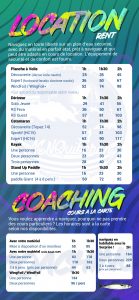 - KAYAKS : simples, doubles, triple (caution 100€)